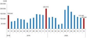 In Turkey, house sales decreased by 47.6% in December 2020 compared to the same month of the previous year and hence, became 105 thousand 981. For the house sales of December 2020, İstanbul had the highest share of house sales with 19.1% and 20 thousand 236 sold house. The followers of İstanbul were Ankara with 9 thousand 990 house sales and İzmir 5 thousand 794 house sales with the share of 9.4% and 5.5% respectively. The least house sold provinces were Ardahan with 18 house sales, Hakkari with 20 house sales and Bayburt with 100 house sales.